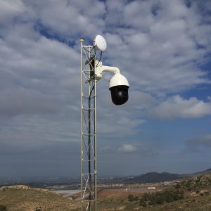 Instalamos en una zona perimetral de 2 km considerada de especial importancia un completo sistema de barreras de infrarrojos TAKEX con tramos de 100-150m. Debido a los continuos problemas en el cableado por los roedores, se realizo un diseño específico basado en comunicaciones inalámbricas LoRa para la transmisión de alarmas y recepción de señales para la activación de focos LED.