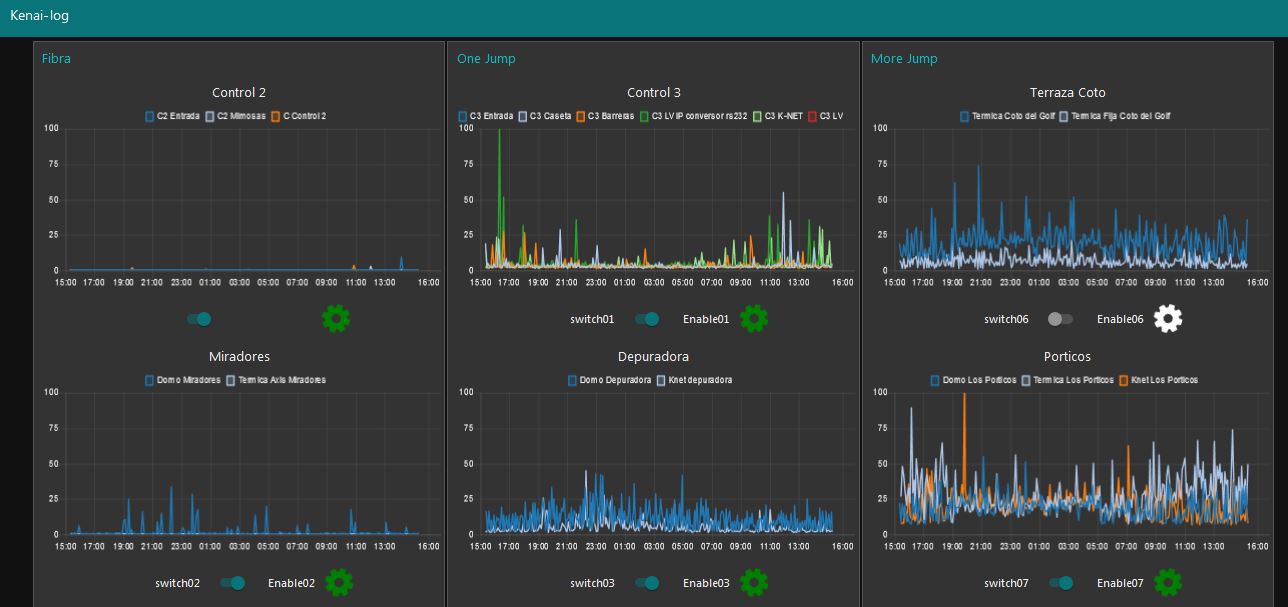 El Centro de Control dispone de un software específico e-netcamCLIENT de Ipronet que permite visualizar en tiempo real, grabaciones, avisos por detección de movimiento y recepción de alarmas.